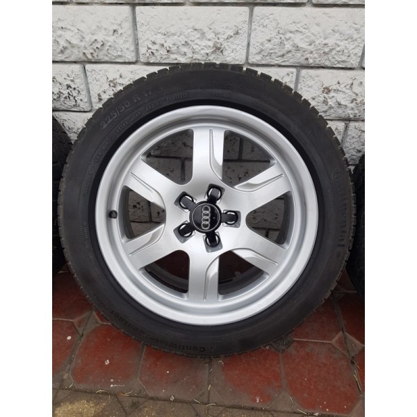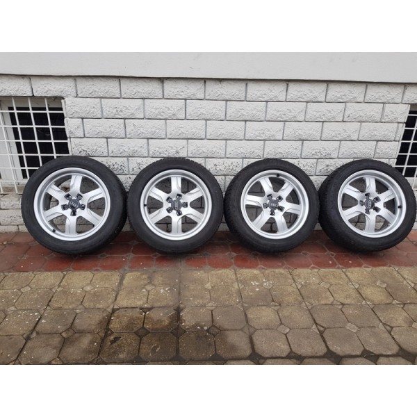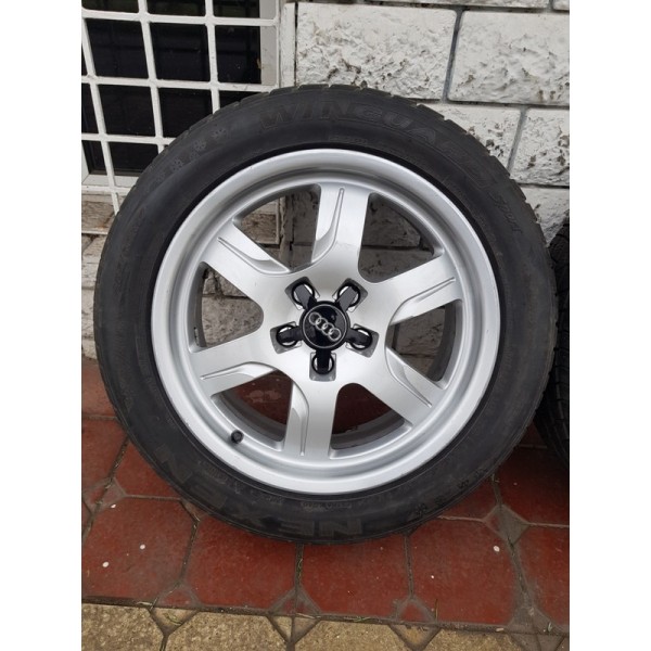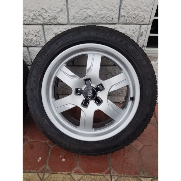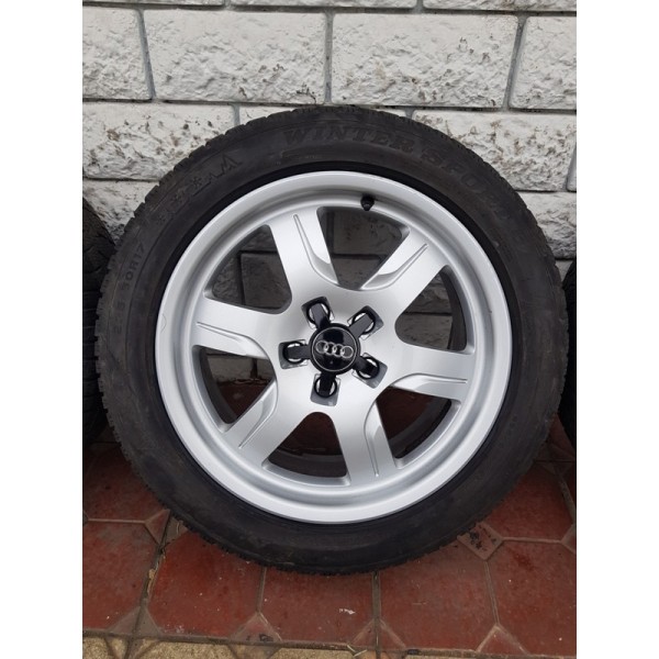 Jante Audi A5 originale 5x112 - 7.5x17 et 28. Jantele ruleaza fara probleme, nu bat, nu sunt strambe, nu au fost sudate, cod janta 8TO 601 025B. Sunt echipate cu anvelope de iarna M+S 225.50r17 care mai merg aprox un sezon, in functie de km parcursi, diferite marci. Lipsa capace.