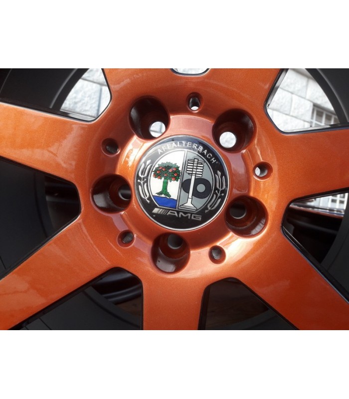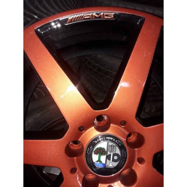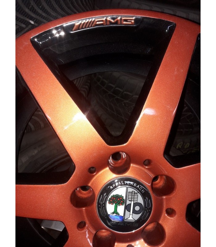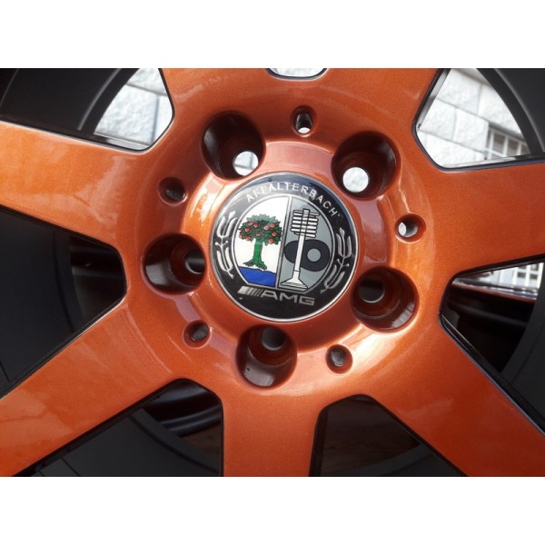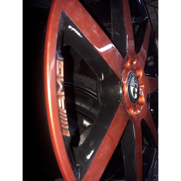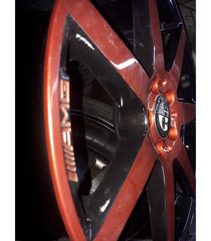 Jante Mercedes C Class AMG 18 coniac 8.0x18 et 50 fata, 8.5x18 et 54 spate - Jantele ruleaza fara probleme, nu bat, nu sunt strambe, nu au fost sudate. Jantele au fost revopsite in doua culori (coniac, black). Jantele potrivesc pe o gama larga de autoturisme cu prinderea de 5x112 gaura butuc 66,5 mm, cum ar fi: Mercedes C Class, E Class, GLA, GLK, GLC, Viano, Vito, etc.