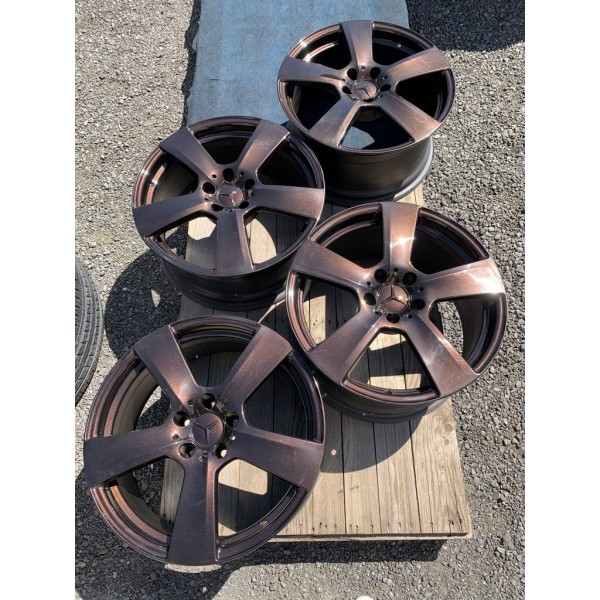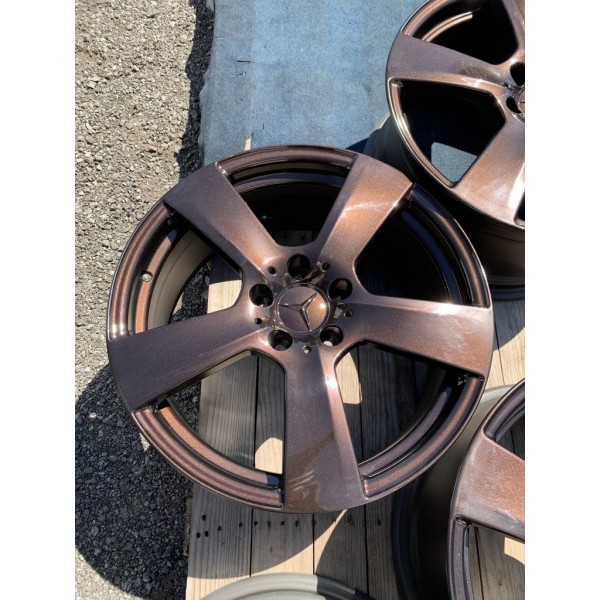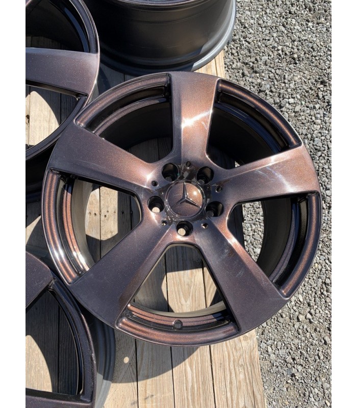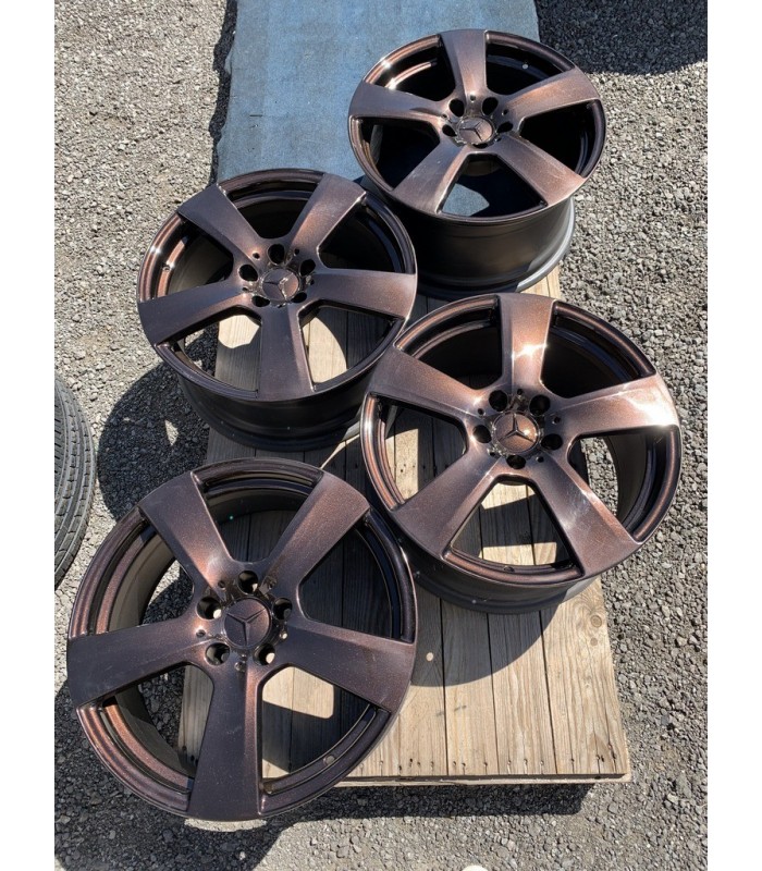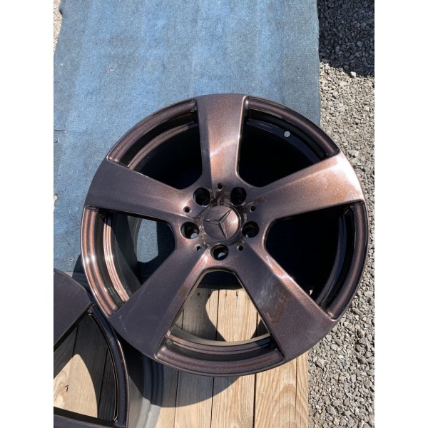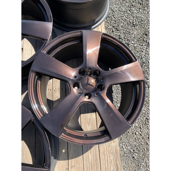 Jante Originale Mercedes C Class / E Class 18 8.0x18 et 45 fata / 9.0x18 et 54 spate - Jantele ruleaza fara probleme, nu bat, nu sunt strambe, nu au fost sudate. Jantele arata foarte bine!! Au fost revopsite cu o culoare SPECIALA (cafeniu metalizat, reflecta in mai multe culori).
