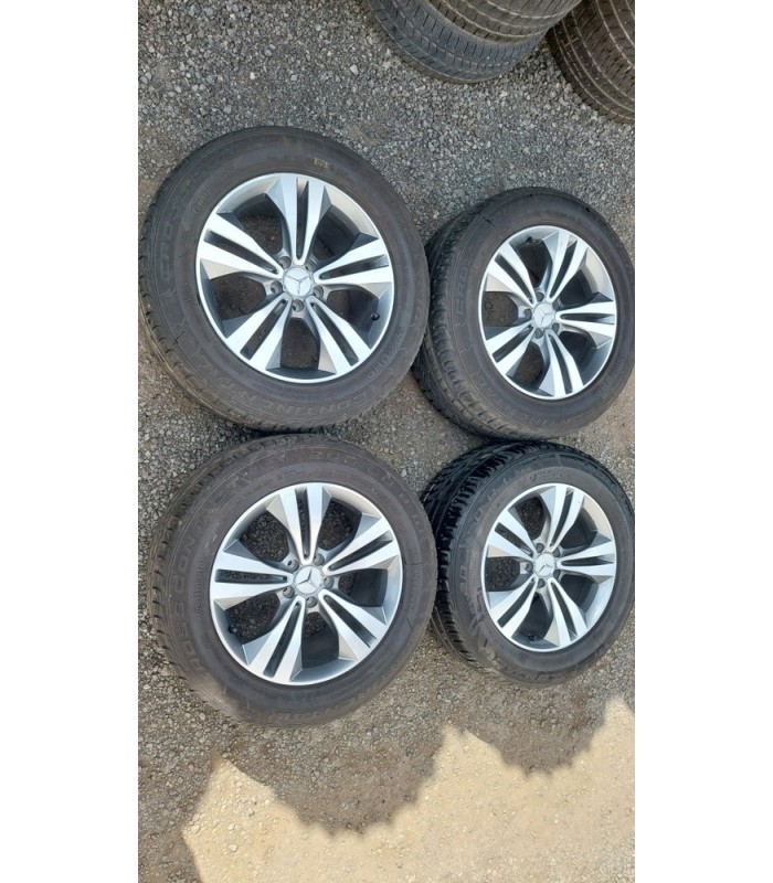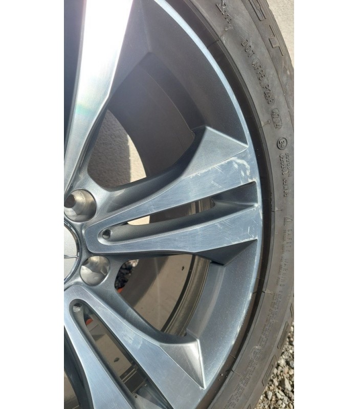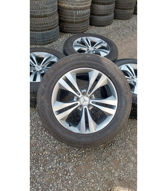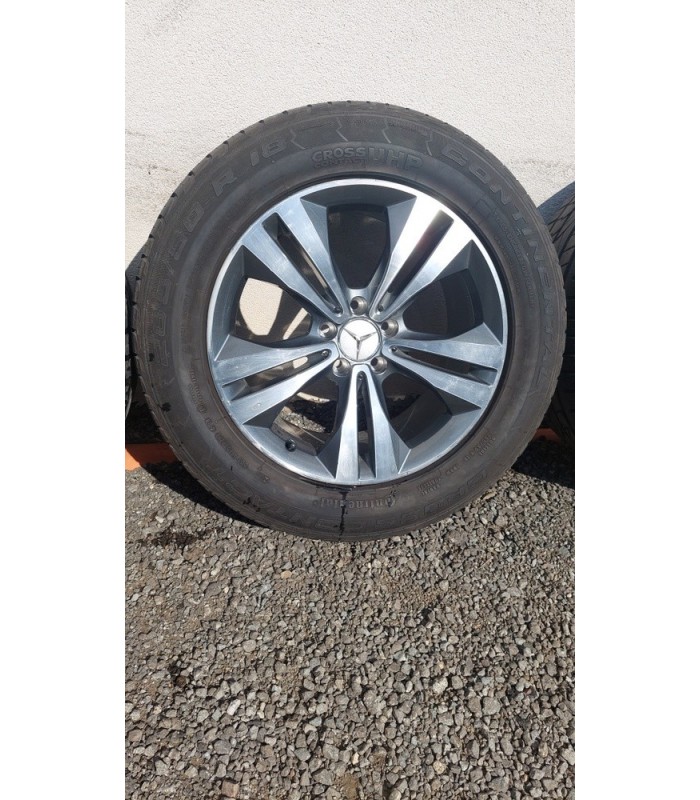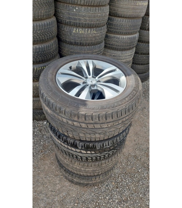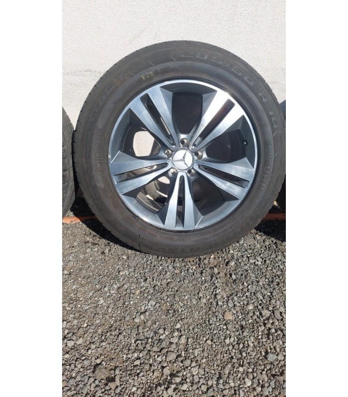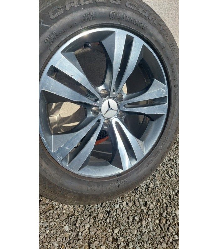 Jante Mercedes ML 55 AMG 9.5x18 et 48 5x112 Originale - Jantele ruleaza fara probleme, nu bat, nu sunt strambe, nu au fost sudate. Sunt echipate cu anvelope de vara 285/50r18 care mai merg cel putin un sezon sau doua, in functie de km parcursi, marca Continental. Jantele prezinta mici zgarieturi. Lipsa capace.