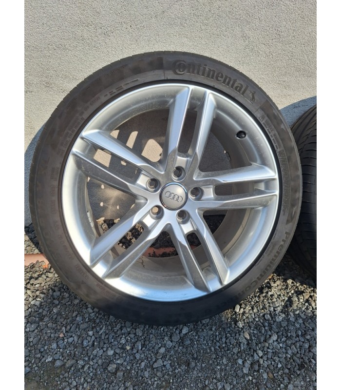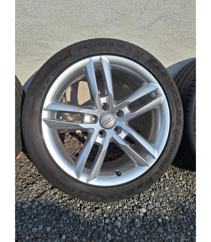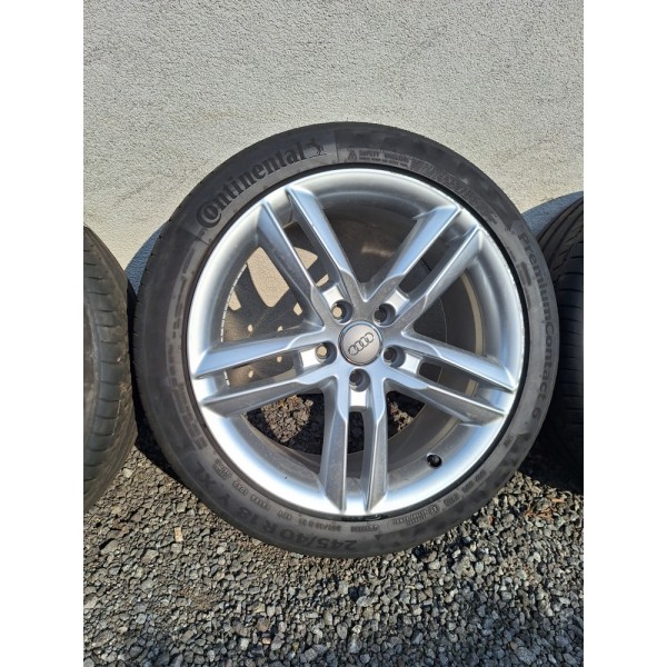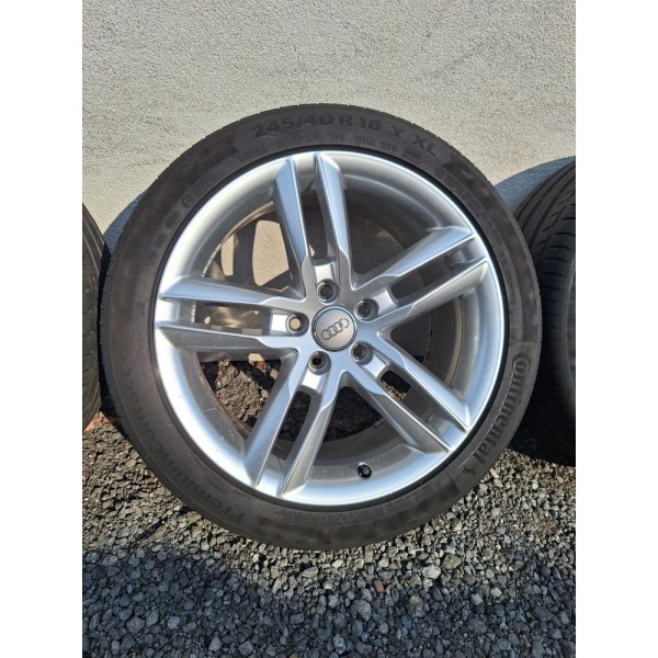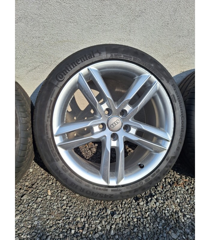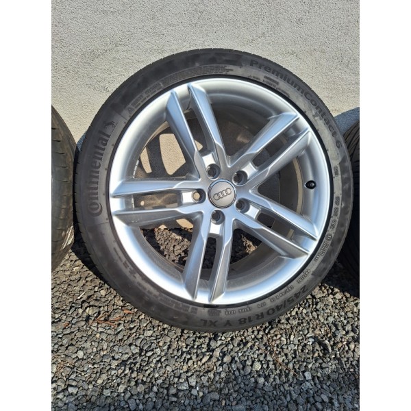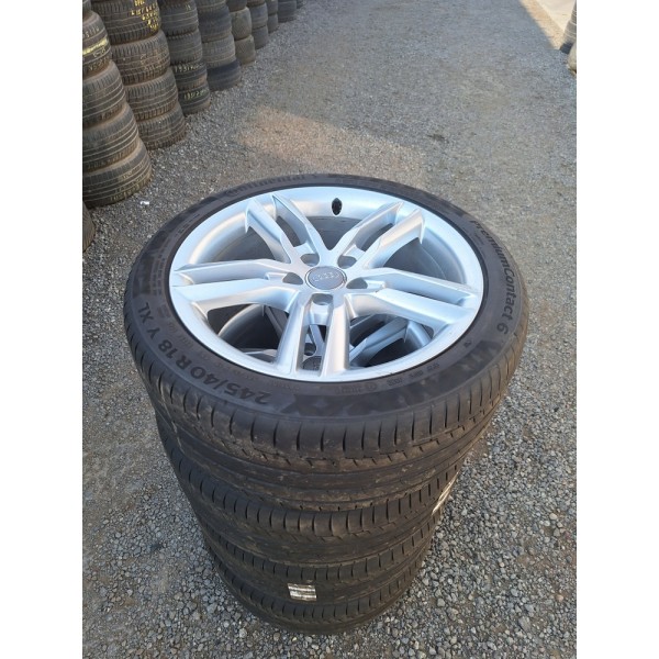 Jante Audi A4 B8 Facelift S-Line 8.0x18 et 47 originale Made In Poland gaura butuc 66,5 mm - Jantele ruleaza fara probleme, nu bat, nu sunt strambe, nu au fost sudate. Sunt echipate cu anvelope de vara Continental 245/40r18 care mai merg aprox un sezon sau doua, in functie de km parcursi, an fabriactie 2022-23. Jantele prezinta mici zgarieturi. Lipsa capace.