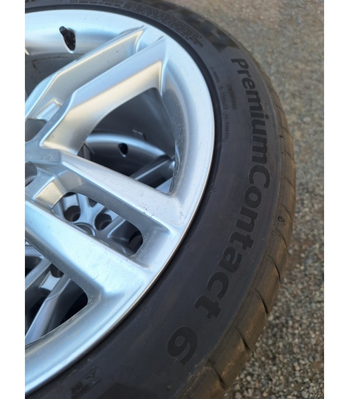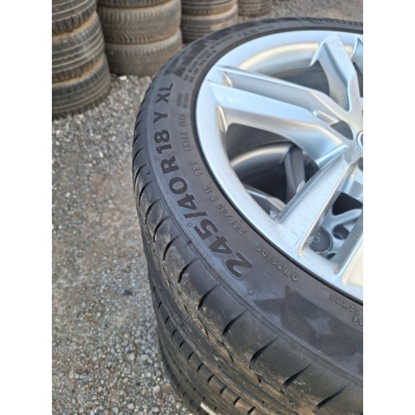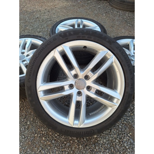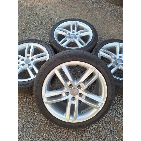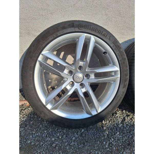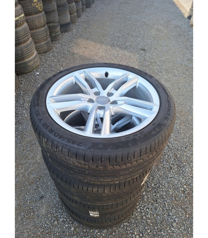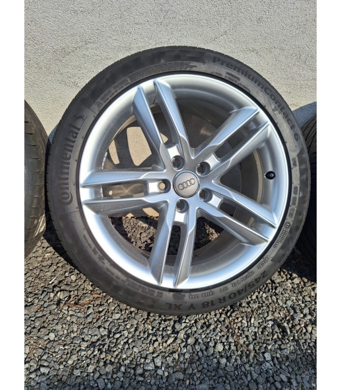 Jante Audi A4 B8 Facelift S-Line 8.0x18 et 47 originale Made In Poland gaura butuc 66,5 mm - Jantele ruleaza fara probleme, nu bat, nu sunt strambe, nu au fost sudate. Sunt echipate cu anvelope de vara Continental 245/40r18 care mai merg aprox un sezon sau doua, in functie de km parcursi, an fabriactie 2022-23. Jantele prezinta mici zgarieturi. Lipsa capace.